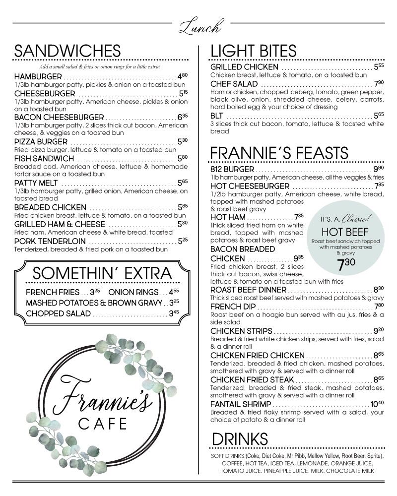 The ethos of Frannie’s Cafe lies in its dedication to quality and community. Whether you’re catching the big game or enjoying a casual meal with friends, the warm ambiance and delectable dishes promise a satisfying outing.